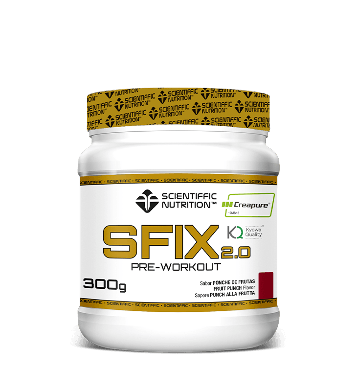 SFIX 2.0. Pre Workout para optimizar tu rendimiento deportivo, con Creatina Creapure, BCAA, Beta Alanina, Glutamina Kyowa y Cafeína – Sabor Ponche de Frutas, 300g.