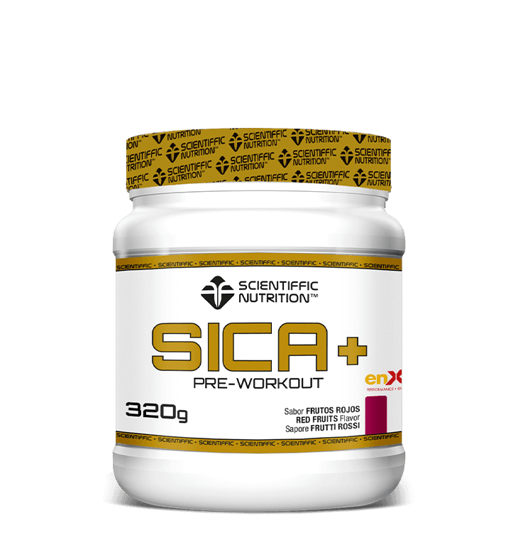 SICA + es un potente Pre – Workout de liberación sostenida y con efecto saciante. 320g – Sabor Frutos rojos.