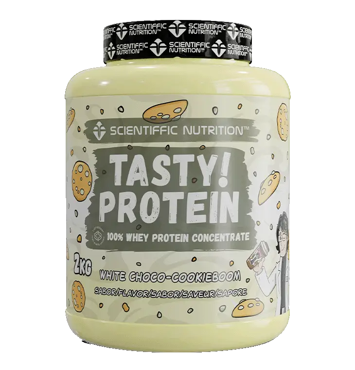 Tasty! Protein Se trata de un Concentrado de Proteína de Suero de LECHE 80% Lacprodan® SP-8011V. Formulado con enzimas digestivas y lactasa para favorecer la digestión. Increíble sabor Choco blanco Bookieboom